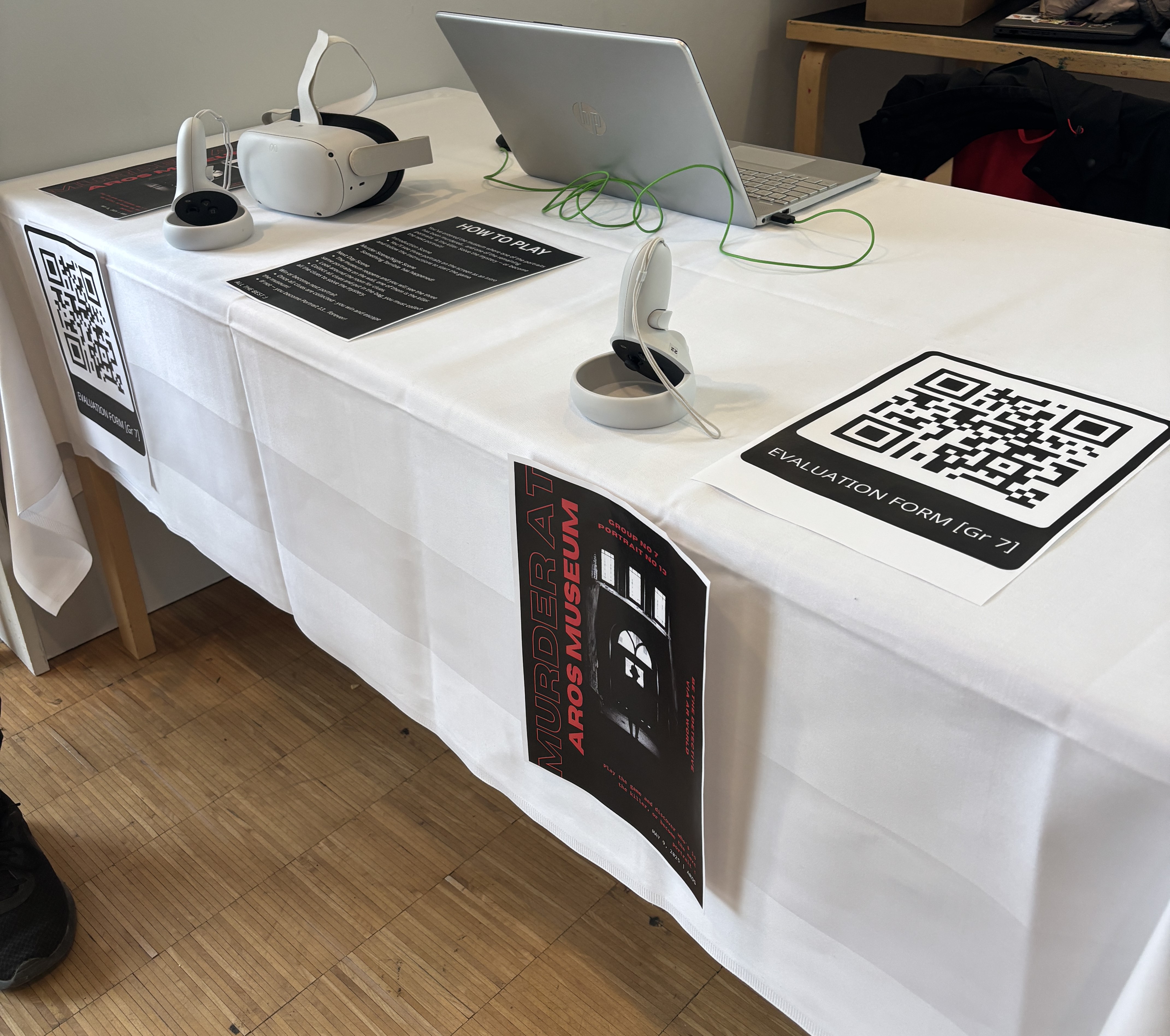 We showcased our Unity-built AR game, allowing players to:Interact with clues and paintings, examine virtual objects for clues, connect evidence etc